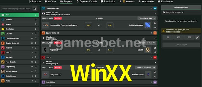 A aposta WinXX oferece aos jogadores a experiência mais conveniente de apostas em eSports!
